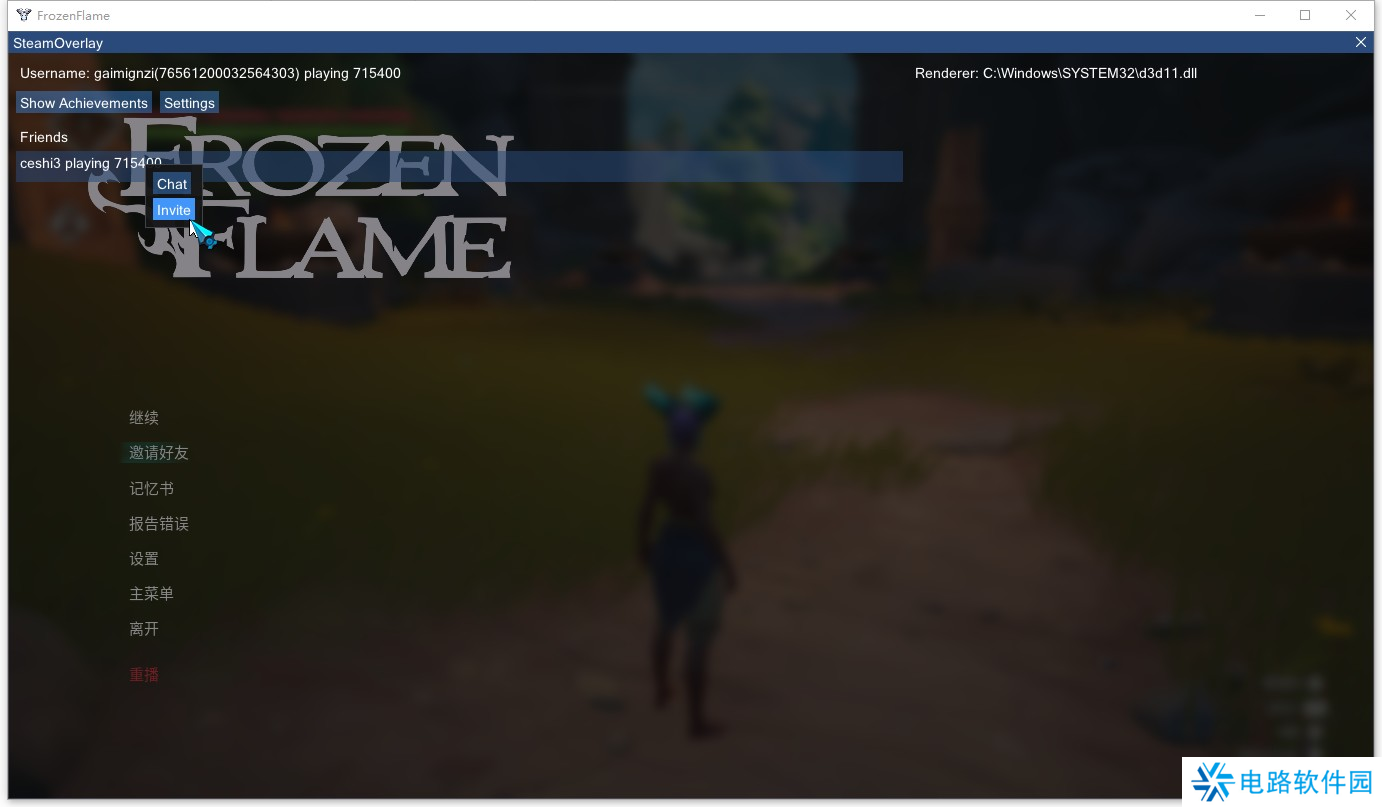 2). 平台载入BinariesWin64FrozenFlame-Win64-Shipping.exe,启动。
