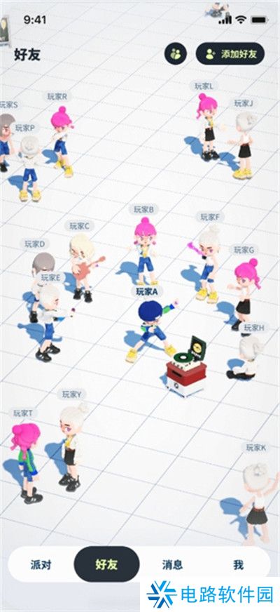 3、好友广场:朋友是派对中不可或缺的元素。点击右上角的“添加好友”,让你的朋友们也出现在你的广场,一同分享欢乐。