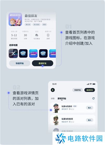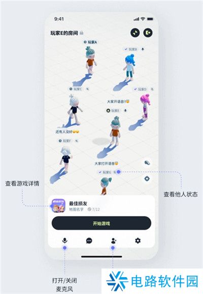 2、派对广场:首页上每个角色都代表着平台上的活跃玩家。你可以点击感兴趣的角色,查看他们的状态,与他们聊天,甚至加入他们的游戏。