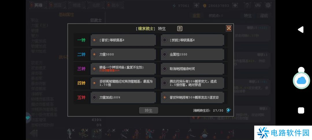 每个英雄达到60级后开放转生,需要消耗转生石,按转生次数分别消耗5,10,15,20,25个,英雄将回到1级,获取额外的基础属性和转生词条。转生词条2条线可以随意选择与更换,所以无需反复询问转生选择那条,不同时期选择不一样,自己打桩试试就行。注:无尽无经验。