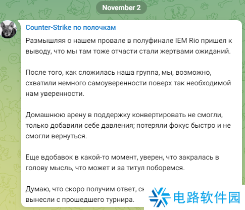 “我来反思一下我们在IEM里约站半决赛中的失败,我得出的结论是,我们在一定程度上也是高期望的牺牲品。
