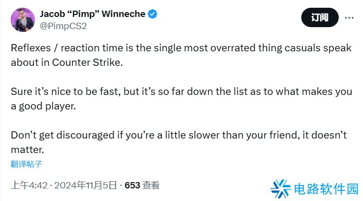 Pimp:“反应/反应时间是普通玩家在CS里谈的最多的话题之一。当然,反应快是好事,但就成为一名优秀选手的标准而言,速度却排在很后面。