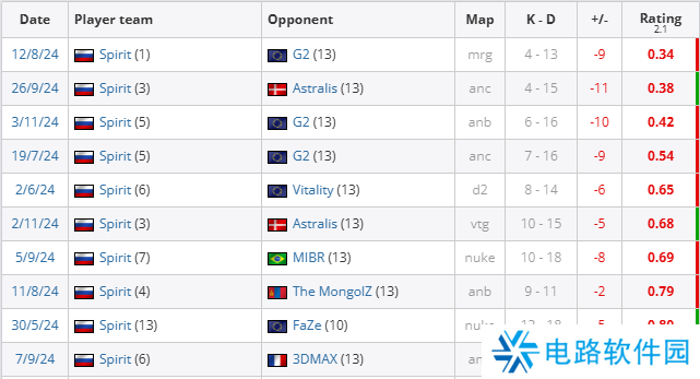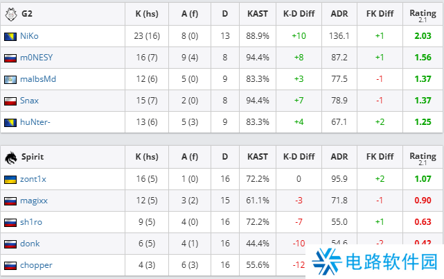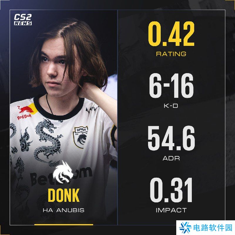 三图过后,Spirit 0-3不敌G2无缘冠军,而donk则是全队唯一正战绩选手(1.07 rating)