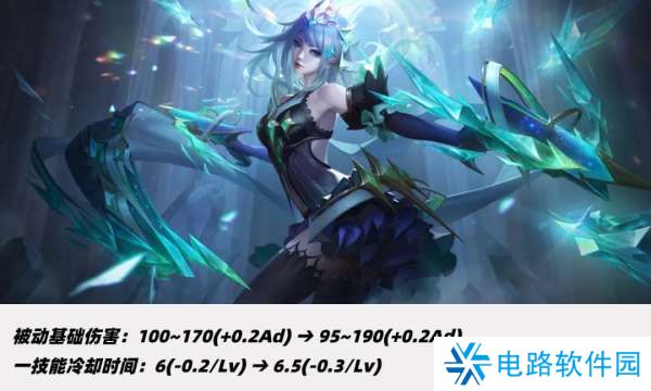 一技能冷却时间从6-5秒调整为6.5-5秒,即一级时增加了0.5秒、满级不变,改动思路就是削弱前期、加强后期。
