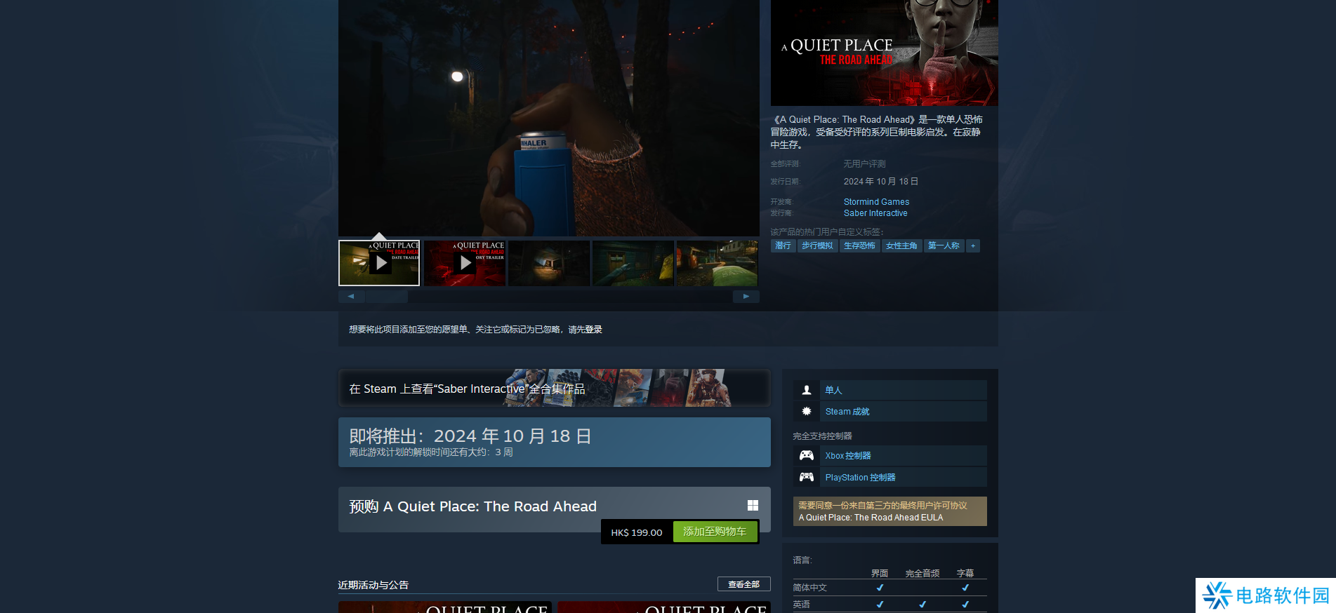 《寂静之地:前方之路》Steam版的上线时间为2024 年 10 月 18 日上午10点,预载时间大概是前一天,不过也没有必要,游戏比较小。