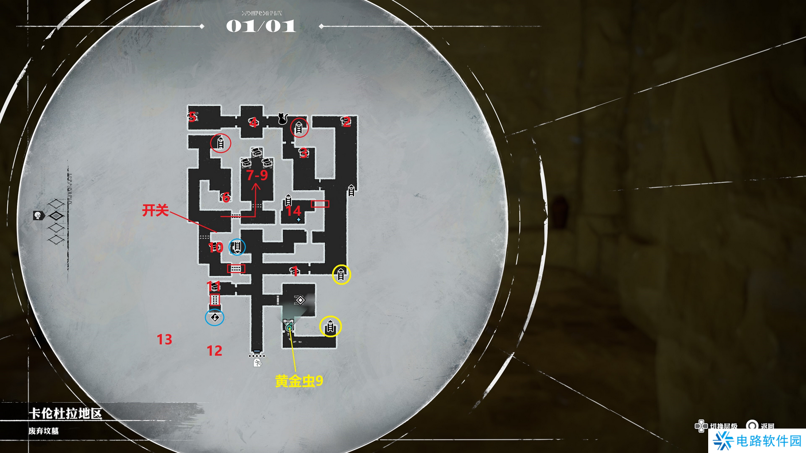 废弃坟墓关于刷级,可以在地图东侧大片杂兵处刷,杂兵北部还有一个精英怪,以及下图14处楼梯上去一个精英怪,都打完只需要摸猫回到阿卡德梅,再回来就会刷新,刷到空蓝就可以走了。