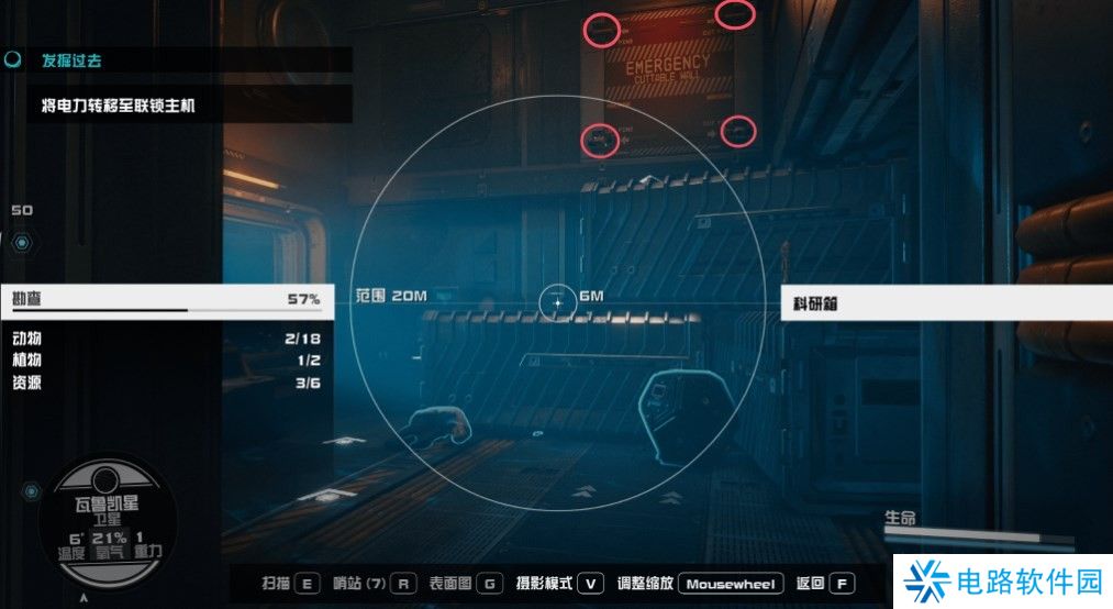 进入大坝后的流程,完成传送实验的正确数值是“335”;将电力转移至联锁主机时,根据路线引导抵达下图房间,下图中红圈处需要射断才能继续前进。