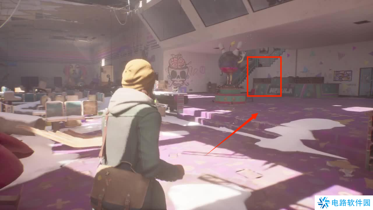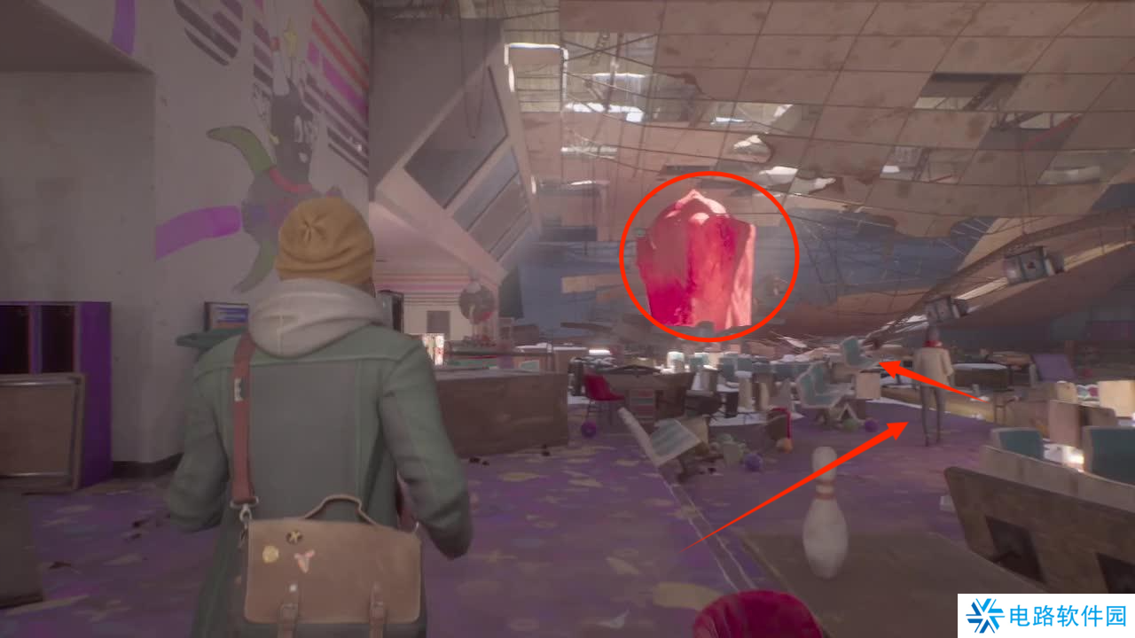首先我们来到第一章,需要找到保龄球馆的焦点,我们再进去之后可以看见一个巨大的红色篷布,向前走到篷布那里就是任务点。