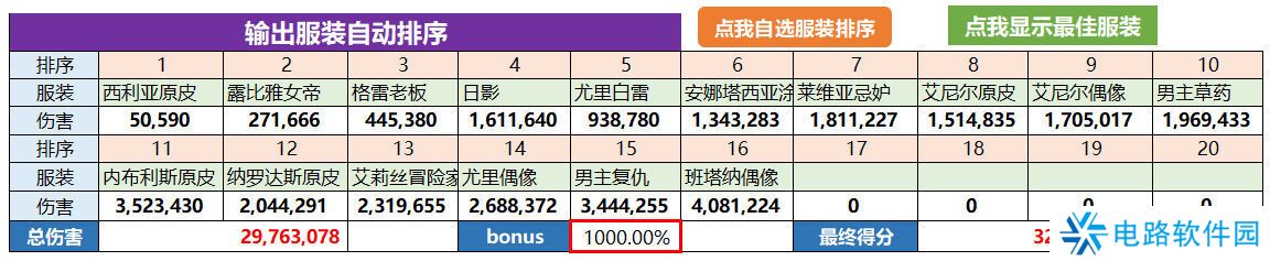 如果这些服装都没有或者未加5,请使用下文的 末日之书计算器,自动计算输出前20服装。