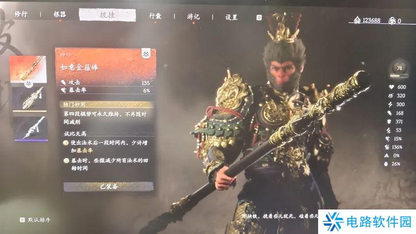 3、装备如意金箍棒和大圣套装(神珍凤翅紫金冠、神珍锁子黄金甲、神珍点翠飞龙釬、神珍藕丝步云履)。