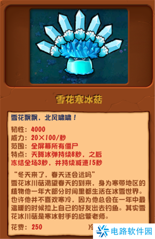 评价:8秒后冻结全场3秒,**僵尸来袭时的绝佳辅助。为其他植物创造更多输出时间。