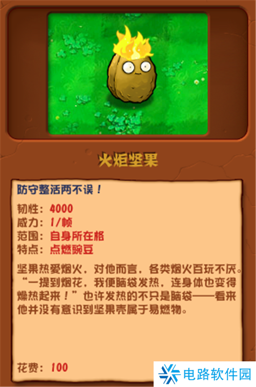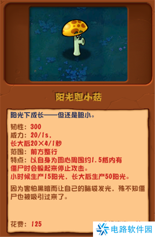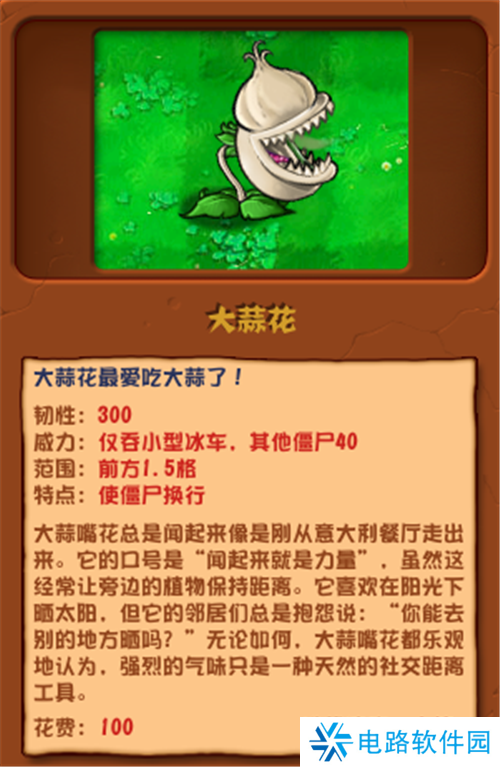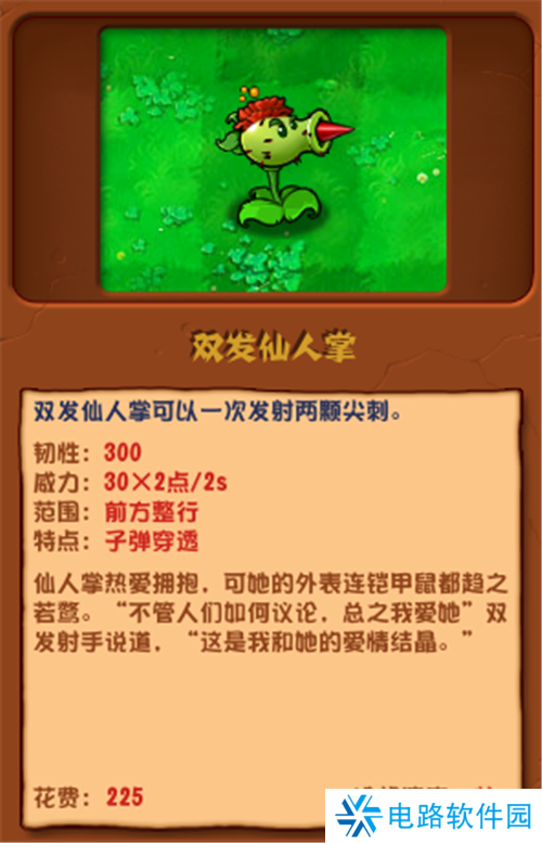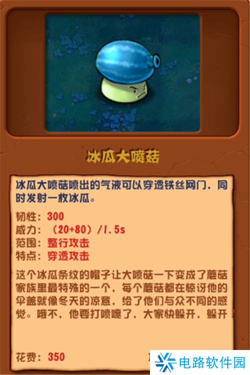 评价:第八关奖励植物,冷却快且返还阳光。前期保护单路,阳光充足后可替换为攻击植物。
