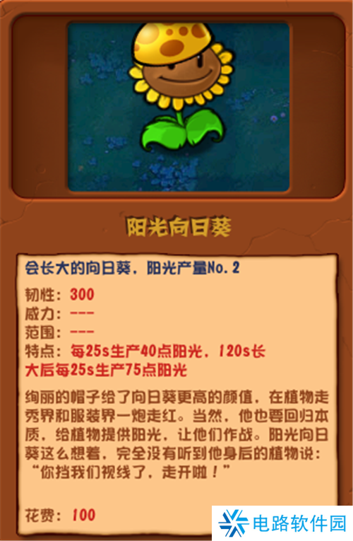 评价:成长型植物中的佼佼者,配合阳光豆,25秒内产出125点阳光。前10关仅需5棵,阳光无忧。