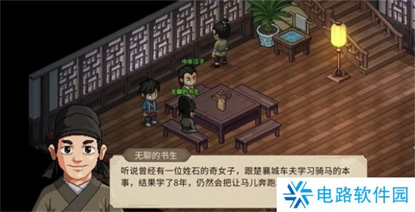 1、先前往楚襄城福临客栈,找NPC无聊的书生对话,位置如图所示。
